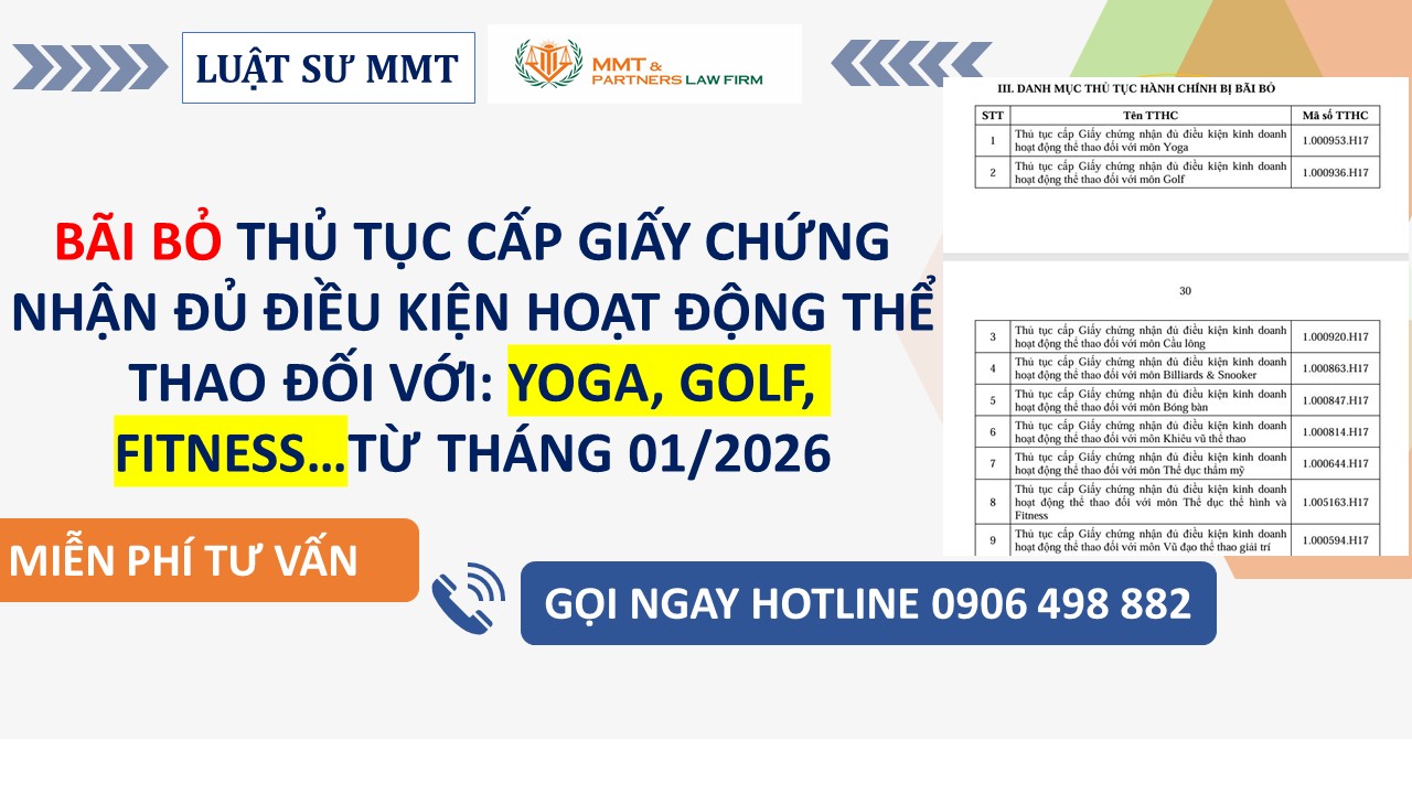 BÃI BỎ Thủ tục cấp Giấy chứng nhận đủ điều kiện kinh doanh hoạt động thể thao đối với các môn: Yoga, Golf, Cầu […]